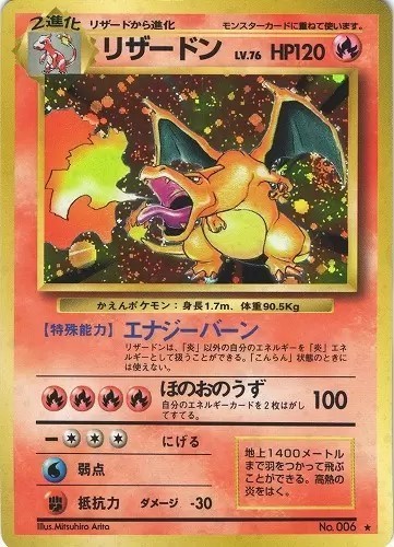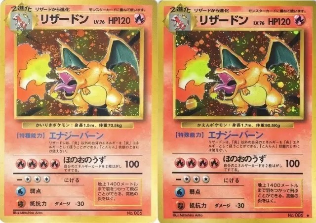 (写真左)初版リザードンの場合は「かいりきポケモン」との誤記がある